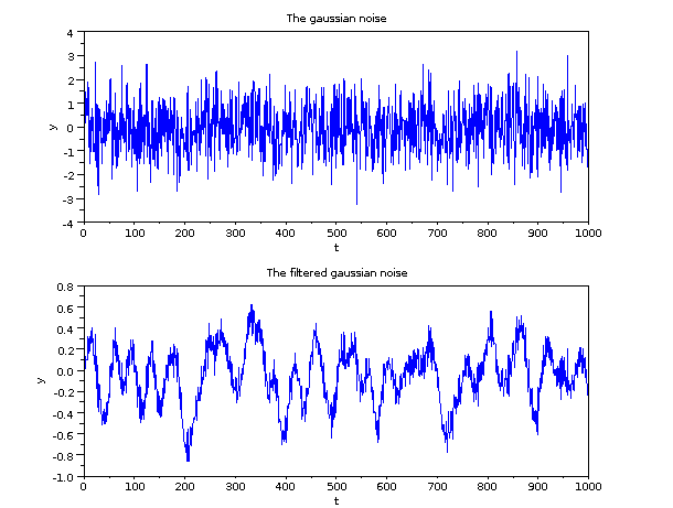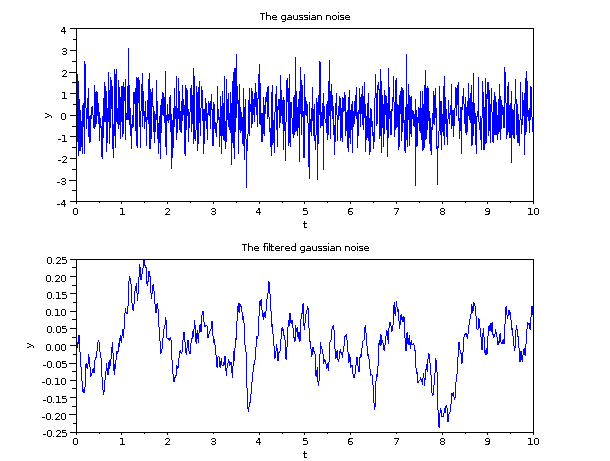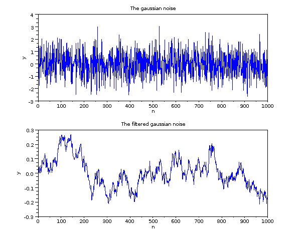 As we can see in the result, the high frequencies of the noise have been removed and it remains only the low frequencies. The signal is still noisy, but it contains mainly low frequencies.