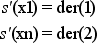 in this case the cubic spline is computed by using the end points derivatives which must be provided as the last argument der:
